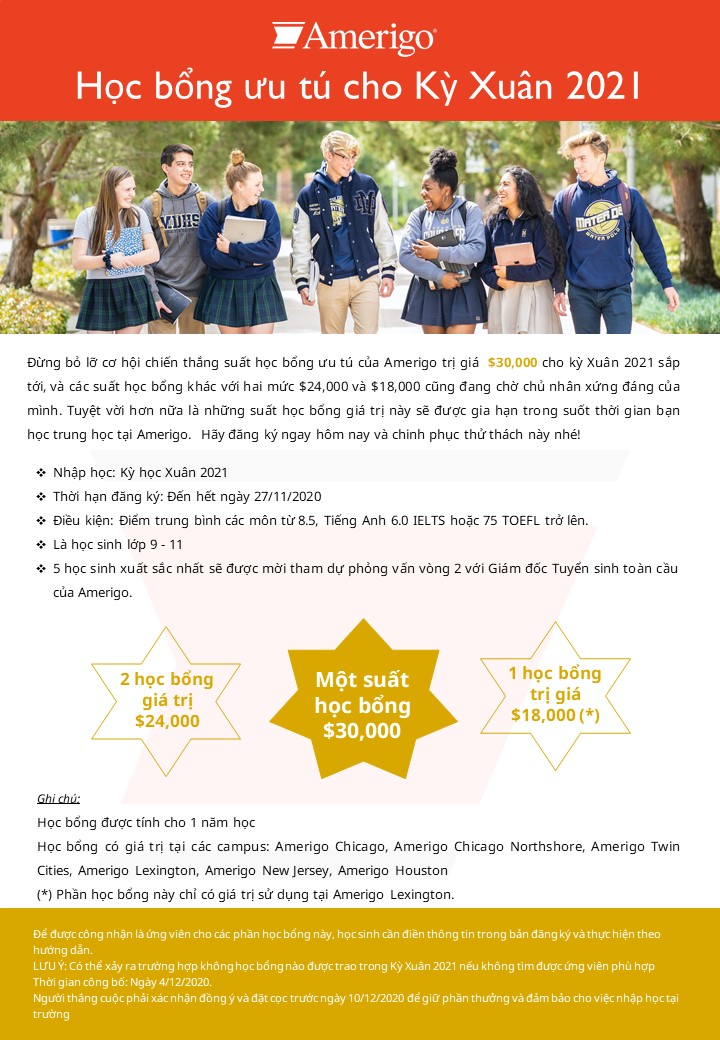 (*) Áp dụng cho học sinh nộp vào các campus sau: Amerigo Chicago, Amerigo Chicago North Shore, Amerigo Twin Cities, Amerigo New Jersey, Amerigo Houston